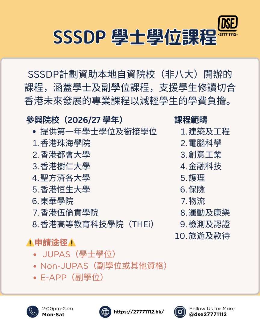 SSSDP(指定專業/界別課程資助計劃)學士學位課程