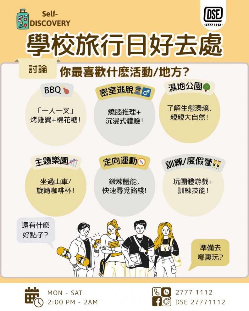 【學校旅行日好去處】你最喜歡什麽活動/地方?