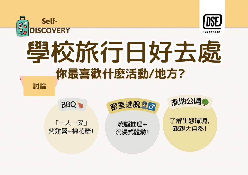 【學校旅行日好去處】你最喜歡什麽活動/地方?